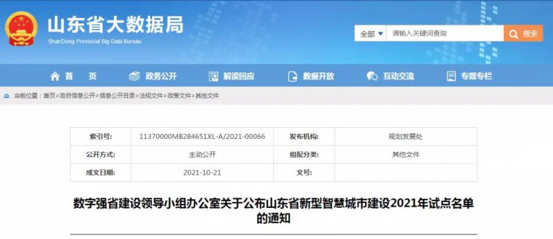 山東省2021年新型智慧城市建設試點名單