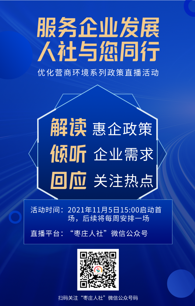 廣大企業負責人和企業職工等可關注“棗莊人社”微信公眾號,直播開始后點擊觀看并參與直播互動。