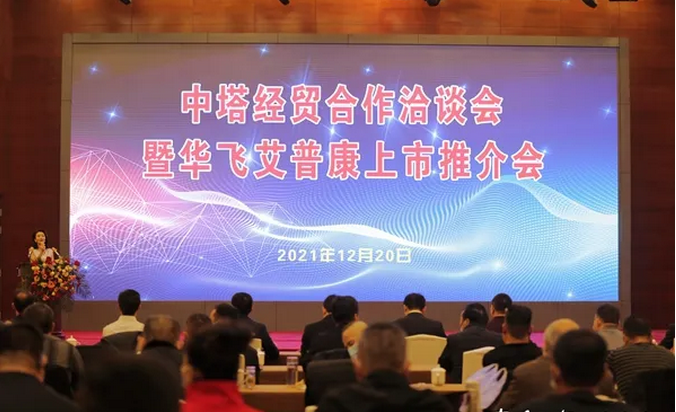 為進一步增進中塔友誼,擴大經貿合作,促進國內國際雙循環,12月20日,中塔經貿合作洽談會暨華飛艾普康(股票代碼900031)上市推介會在棗莊開元大酒店舉行,并為華飛艾普康(山東)國際商貿有限公司揭牌。