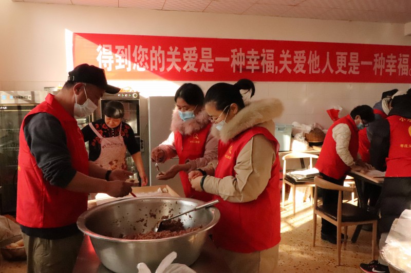 活動當天,志愿者們一大早就去菜市場購買肉、蘿卜、粉條等食材,在廚房包起了愛心餃子,大家分工有序、配合默契,和面、攪餡、搟皮、包餃子,一雙雙熱情的雙手不停地忙碌著,當一盆盆飽含關愛之情熱氣騰騰的餃子盛到老人們的碗里,看著老人們吃的津津有味,美味的餃子散發出香味和老人們幸福的歡聲笑語碰撞到一起,讓他們感受到了家的溫馨。