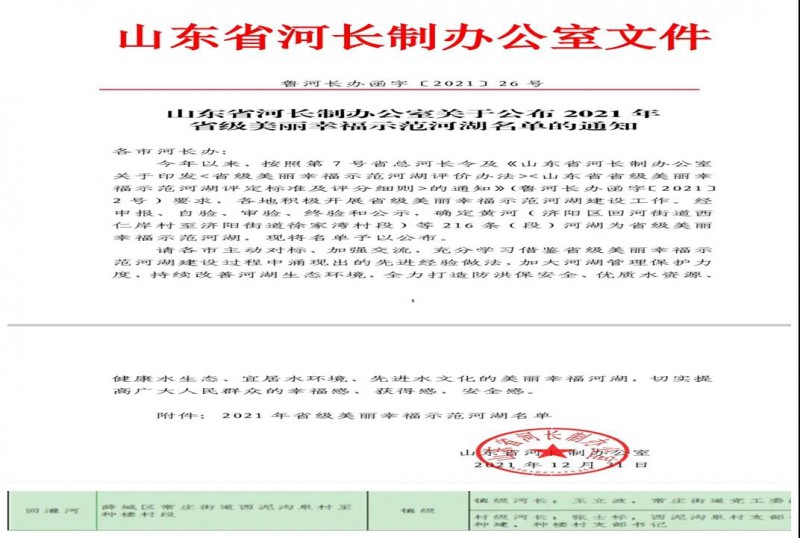 日前,山東省河長制辦公室下發《關于公布2021年省級美麗幸福示范河湖名單的通知》,按照第7號省總河長令及《山東省河長制辦公室關于印發<省級美麗幸福示范河湖評價辦法><山東省省級美麗幸福示范河湖評定標準及評分細則>的通知》要求,經區級自評、市級驗收、省級復核和公示,薛城區常莊街道“回灌河”入選省級美麗幸福示范河湖。