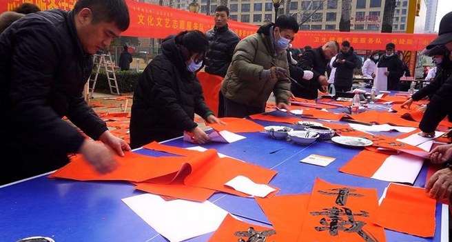 記者在活動現場看到,志愿者們奮筆疾書,一幅幅書寫工整、行云流暢的對聯躍然紙上,把一幅幅平安和諧、吉祥如意的春聯化作美好祝愿送到市民手中。