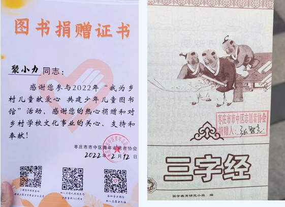 志愿者們捐贈的每本書都有捐贈人蓋章及自己的簽名,每位捐贈人都有屬于自己的圖書捐贈證書。