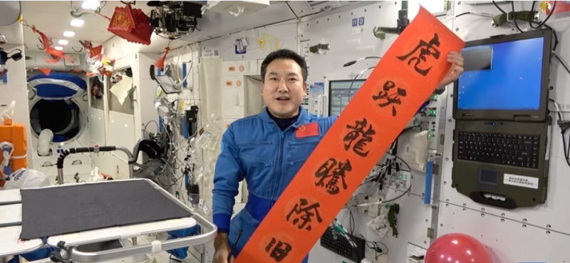 2022年2月1日,中國(guó)空間站里,中國(guó)航天員首次在太空過(guò)春節(jié)。