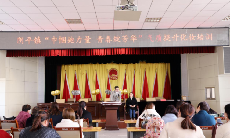 為提升全鎮女性的禮儀修養和化妝技巧,樹立女性良好形象,充分展示女性魅力,塑造女性端莊、得體的職業妝容,3月7日,陰平鎮婦聯舉辦了“巾幗她力量 青春綻芳華”氣質提升職場女性化妝技巧培訓活動,全體機關女同志及56個村婦聯主席100余人參加互動。