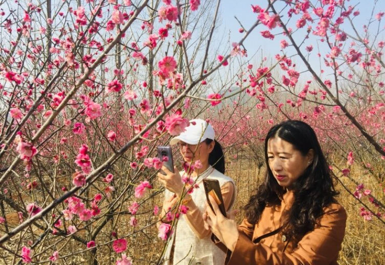 8日,我市最高氣溫達到21℃,臺兒莊區泥溝鎮九星山景區迎來了大批賞梅的游客。景區內近千株梅花競相綻放,漫山遍野披上紅妝。游客們在梅林間穿行,賞花拍照,感受濃濃春意。