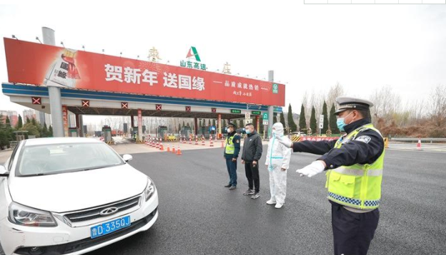 由我市公安、交通、衛健及屬地鎮街組成的聯合檢查隊伍,在京臺高速625出口處對車輛進行逐一排查。 (記者 王龍飛 攝)