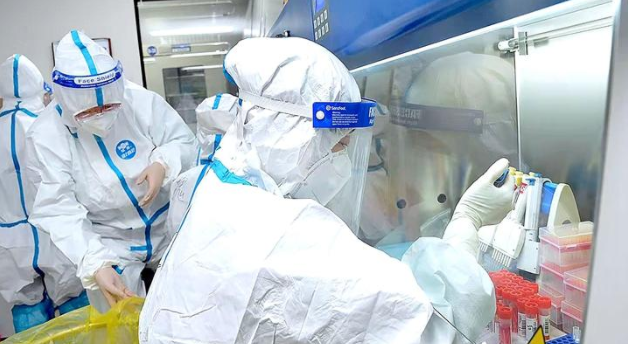 市立醫院檢驗科人員加班加點進行核酸檢驗。 (記者 王龍飛 攝)