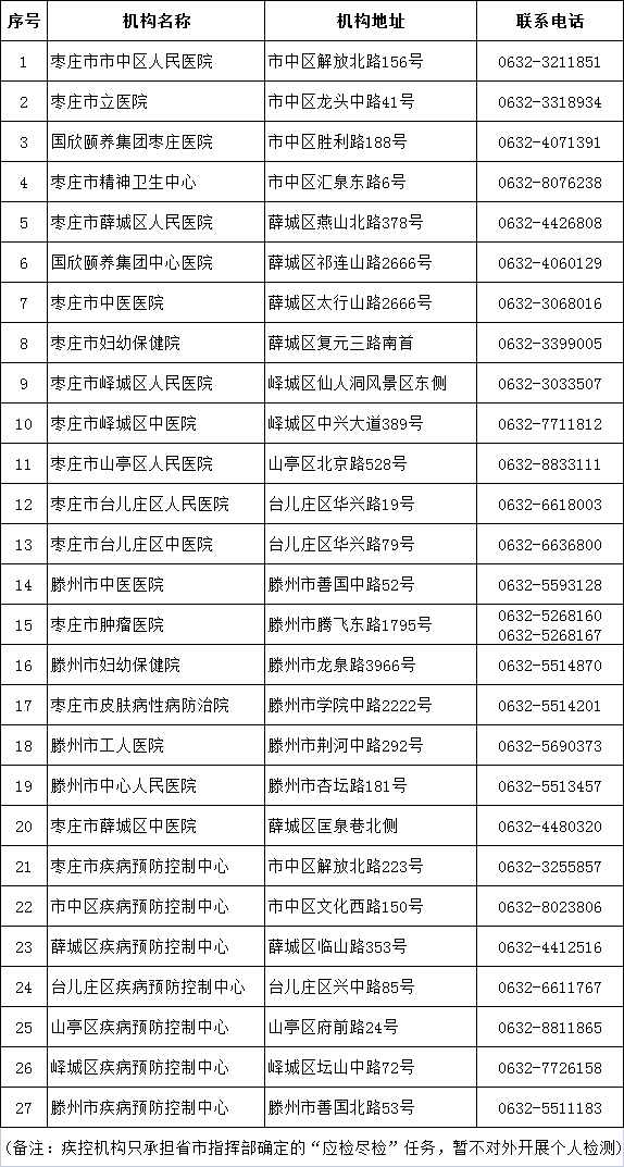 附:棗莊市具備核酸檢測能力的醫療衛生機構名單