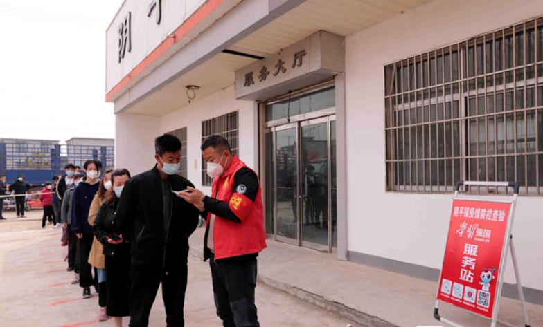 “請核酸檢測的同志往前走,保持一米間距,有序排隊,提前將自己的核酸檢測預登記二維碼找出來,爭取盡快給大家做好本次檢測工作”,近日,在陰平鎮陰平村的核酸檢測采樣點,“學習強國”志愿服務隊志愿者尹鵬正在引導村民排隊秩序,組織大家排隊等候核酸檢測采樣。為助力第四輪核酸檢測開展,陰平村“學習強國”志愿服務隊志愿者們廣泛宣傳,提前組織發動群眾,提高群眾核酸檢測知識率,做到應檢盡檢、不漏一人。