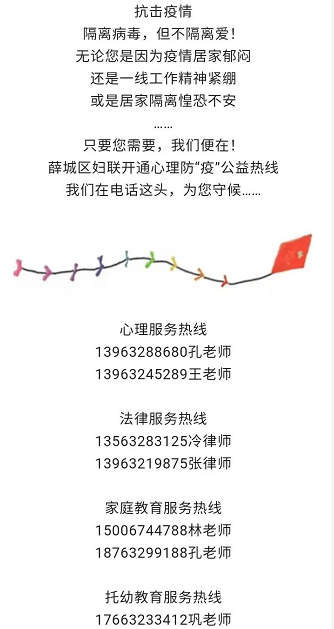 3月7日,薛城區中醫院舉辦2022年第一期家長課堂,提供心理健康疏導和家庭教育方法方面的指導,幫助家長樹立信心,提高兒童家長康復技能;3月14日,舉辦首期兒童康復社會融合班,提高特殊兒童的適應力和社交能力,讓特殊兒童更好地適應社會。同時在疫情期間建立了家長微信群,通過微信的形式向家長們提供心理疏導服務,引導積極樂觀的態度和配合疫情防控工作。薛城區婦聯開通了心理、法律、家庭教育、托幼教育等心理防“疫”公益熱線服務,以預防和減輕疫情所致的心理困頓;團區委聯合區教體局組建了一支心理咨詢志愿者隊伍,青少年若有無法排解的心理問題,可通過特定微信公眾號平臺留言,團區委將轉給專業心理咨詢老師,開展針對性的心理疏導。熱線共受理群眾咨詢1800余件,日平均接聽電話約210個。