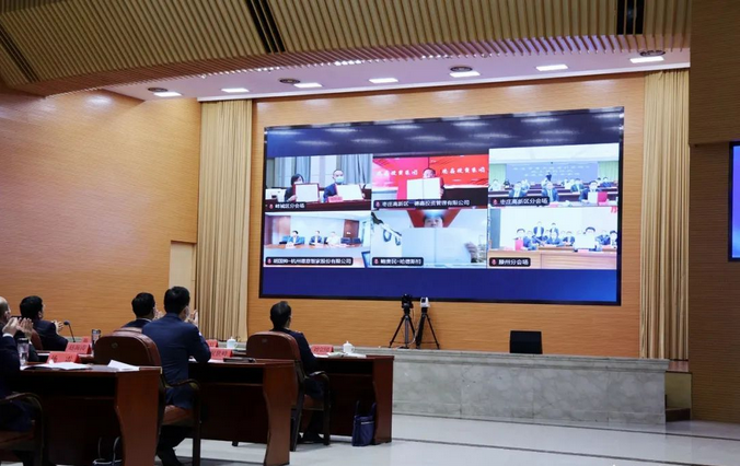 4月21日下午,棗莊市重點招商引資項目線上簽約儀式舉行,市委書記、市人大常委會主任陳平出席并講話,市委副書記、市長張宏偉主持儀式。市委常委、常務副市長邵士官,市委常委、秘書長趙剛,市政協副主席劉宗國,市政府黨組成員、秘書長李玉森在市政大廈主會場出席。市委常委、滕州市委書記陳永生,棗莊高新區黨工委書記、管委會主任王廣部在各自分會場出席。深圳市山東商會會長王立新,心里程置業集團高級副總裁陳潔南,胖虎(北京)科技有限公司董事長馬成,遠東控股集團有限公司董事局主席蔣錫培,科德數控股份有限公司總經理陳虎通過視頻連線參加本次簽約。