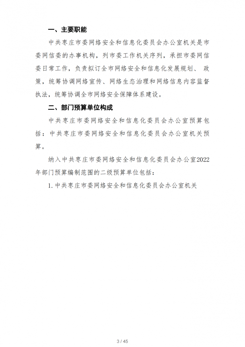 2022年中共棗莊市委網絡安全和信息化委員會辦公室部門預算