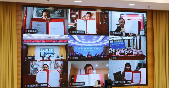 本次簽約以視頻方式進行,邵士官和濰焦集團董事長劉良玉、三一集團副總經理程偉華、國夢(山東)企業發展集團投資總裁喬磊通過視頻作了致辭。