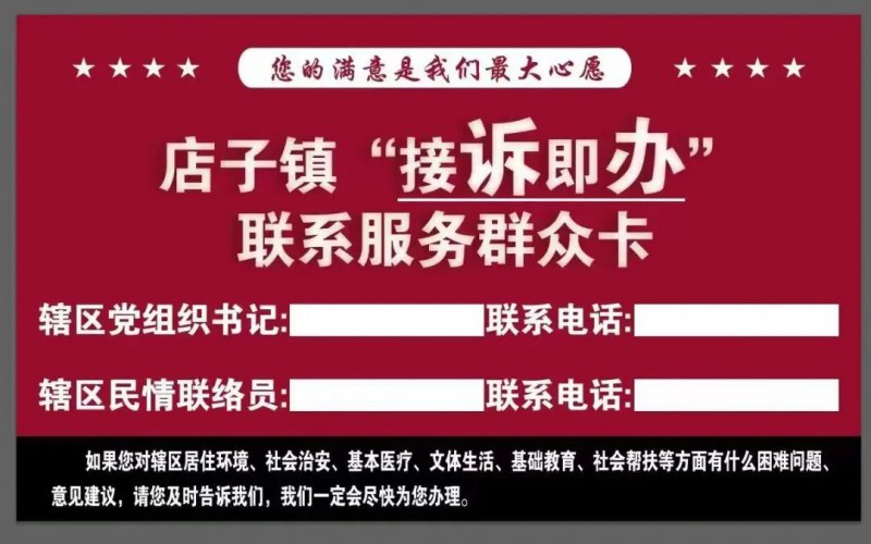 為進(jìn)一步提高網(wǎng)格化服務(wù)管理水平,強(qiáng)化鎮(zhèn)村工作人員與群眾之間的溝通聯(lián)系,及時化解群眾日常生活中的“急難愁盼”問題,店子鎮(zhèn)精心設(shè)計印制了“網(wǎng)格服務(wù)連心卡”,切實做到與轄區(qū)群眾“零距離”溝通、“無盲區(qū)”服務(wù)。便民服務(wù)連心卡上印有網(wǎng)格長、網(wǎng)格員的聯(lián)系電話,工作職責(zé),極大地方便了群眾的生活。