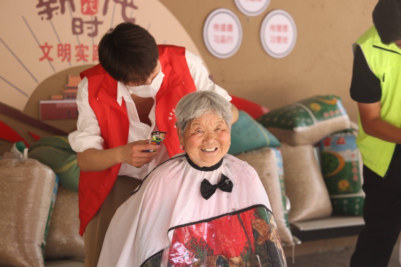 貼心服務暖人心。活動的另一邊,美發協會的新時代文明實踐志愿者和青年志愿者正在院子里為村里老人免費理發,理發師一邊精心地為老人修剪頭發,一邊親切地和老人嘮家常。食堂中,志愿者將煮好的粽子和飯菜呈上老人面前。還有部分志愿者將包好的粽子根據臺賬信息分裝好,送到行動不便的老人家中,同時也送去了節日的問候。