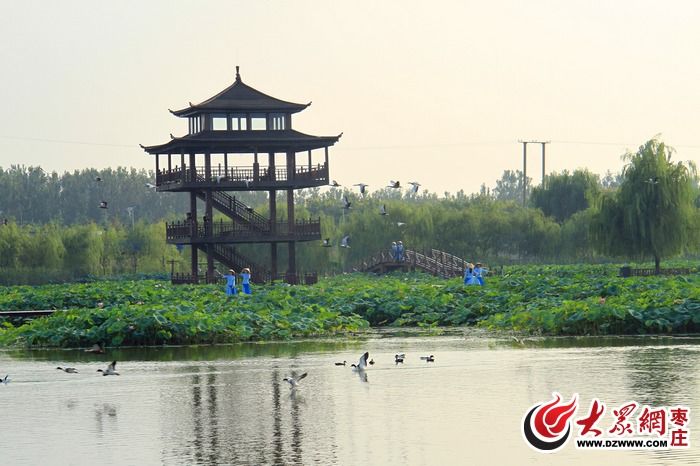 9月11日,臺兒莊雙龍湖濕地,那水、那鳥、那蓮、那景......人與自然和諧相處。(圖/文 袁袤翔)