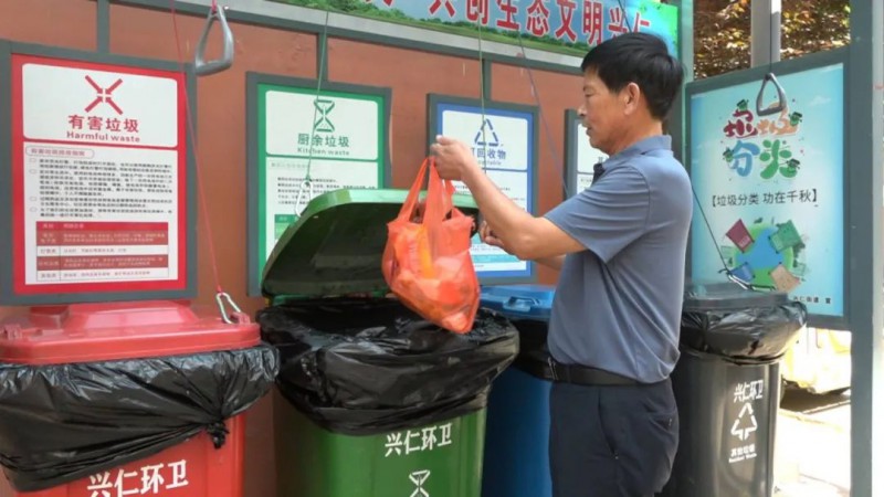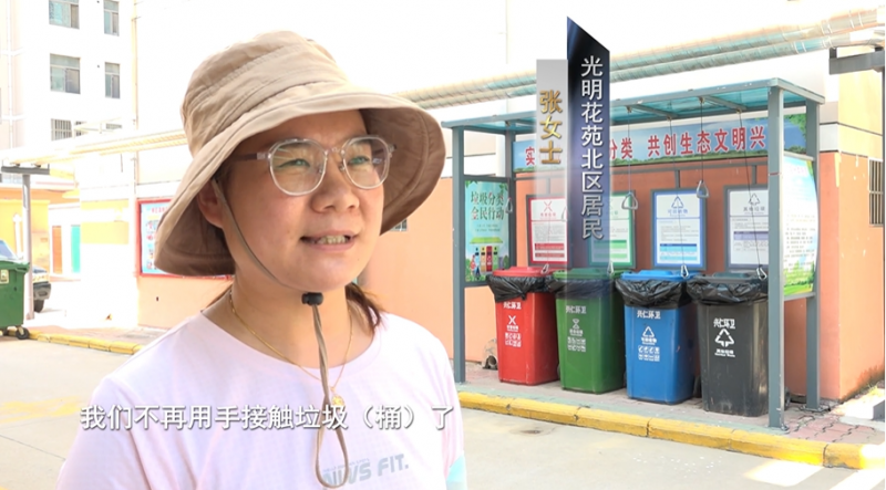 興仁街道創城辦公室成員 馬瑞:“興仁街道在垃圾箱的選用上,更加注重“人性化”,通過在垃圾亭上安放滑輪、牽繩、掛鉤連接垃圾箱蓋,實現“牽繩開蓋”“松繩蓋蓋”。目前,街道已經完成第一批覆蓋15個村居,96座四分類垃圾亭的安裝工作。” 在設置四分類垃圾亭后,可以看到越來越多的居民會留意垃圾分類,小區環境明顯更為干凈整潔,獲得了社區居民的一致好評。