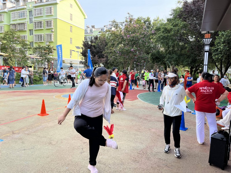“這次運動會太熱鬧了、太開心了。我托球跑得了套羽毛球拍。希望這樣的活動多舉辦幾次,我們老百姓非常喜歡?!敝行慕纸值老愀劢稚鐓^居民李磊興奮地說。本次運動會設置了一分鐘跳繩、一分鐘踢毽子、托球跑 、自行車慢騎、壘球擲準、背夾球等6個趣味性較強的比賽項目,既有速度與精準的角逐,也有團結與協助的較量。參賽者發揮自身潛能,精神抖擻,熱情高昂。現場圍觀居民不斷助威吶喊,喝彩聲此起彼伏。
