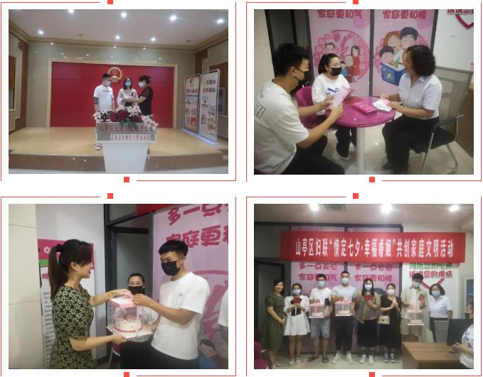 8月4日,山亭區(qū)婦聯(lián)聯(lián)合區(qū)民政局在市民中心婚姻輔導中心舉行了“情定七夕.幸福婚姻”共創(chuàng)家庭文明活動,為結婚登記的新人們送上了一份美好的七夕節(jié)禮物。婚姻家庭輔導中心的志愿者們幫助新人們做好步入婚姻的準備,梳理緊張心理,傳授夫妻相處技巧、家庭關系維護、家風家教等理念,增加他們婚姻幸福指數(shù),受到年輕夫妻的歡迎。
