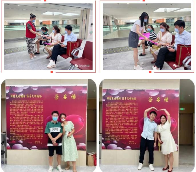 8月4日上午,臺兒莊區(qū)婦聯(lián)聯(lián)合區(qū)民政局在區(qū)婚姻登記處舉辦“ 浪漫七夕 幸福護航”集體頒證儀式暨移風易俗主題宣傳活動。活動中,區(qū)婚姻家庭輔導中心志愿者為登記結婚的新人們發(fā)放《抵制惡俗婚鬧陋習 倡樹文明新風承諾書》《關愛心靈健康 促進和諧婚姻》《新時代家風家訓》等宣傳頁,現(xiàn)場講解惡俗婚鬧危害、婚姻關系維護等知識,幫助新人們了解正確的婚戀觀和夫妻相處之道,為促進幸福婚姻、和諧家庭保駕護航。隨后, 新人們在“締結美好姻緣 倡導文明婚俗”簽名墻上紛紛簽名,以實際行動積極倡導文明風俗,自覺傳承良好家風。
