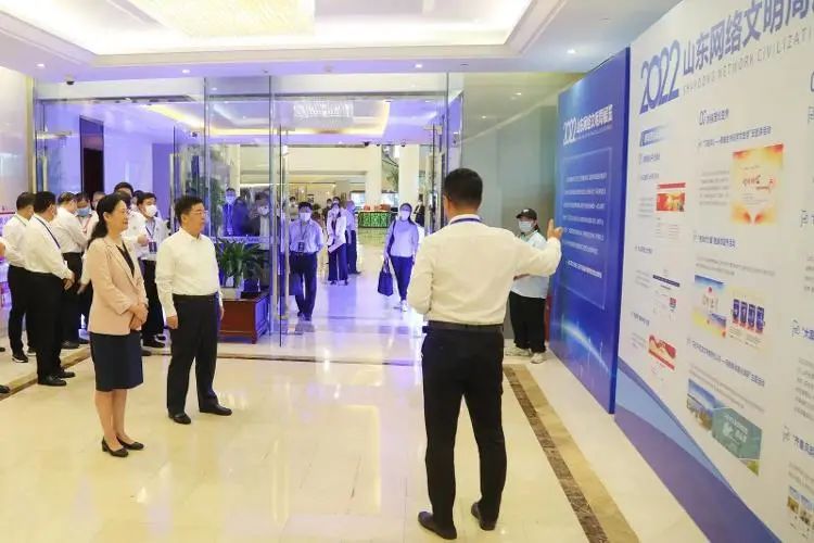 啟動儀式前,與會嘉賓還參觀了網絡文明成果展。本次展覽共分為展現理論武裝新成效、培育網絡文化新風尚、拓展道德建設新空間、營造綜合治理新生態、打造文明創建新品牌五部分,通過圖片和文字全面、鮮活展示了山東省網絡文明建設取得的豐碩成果。