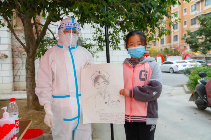 10月27日,在車站花園核酸采樣點,來自臺兒莊區中醫院核酸采樣點的李明、馬奔、崔雅梅三名隊員還像往常一樣為社區居民采樣,“放松,嘴巴呼吸,說啊......” 采樣工作即將結束之際,來自臺兒莊區實驗小學三年級七班的魏一樂小朋友為醫務人員送上一張素描,并害羞地說道:“叔叔、阿姨你們辛苦了!” 畫中描繪了小朋友心目中“白衣天使”的形象,在畫上描繪了一顆愛心,表達著對醫務工作者的感謝。 醫護人員崔雅梅表示,連日來,大家早出晚歸奔赴在各個核酸采樣點,雖然有些疲憊,但收到孩子的畫作,說一聲辛苦了,疲憊感瞬時消失,特別感動,感覺我們的辛苦付出都是值得的。希望通過大家的努力早日戰勝疫情,讓孩子們摘下口罩露出開心的笑臉,無憂無慮地奔跑在校園,那是最令人欣慰的時刻。 “道阻且長,行則將至”,我們堅信,在全區人民的共同努力下,這場戰“疫”必將取得勝利!