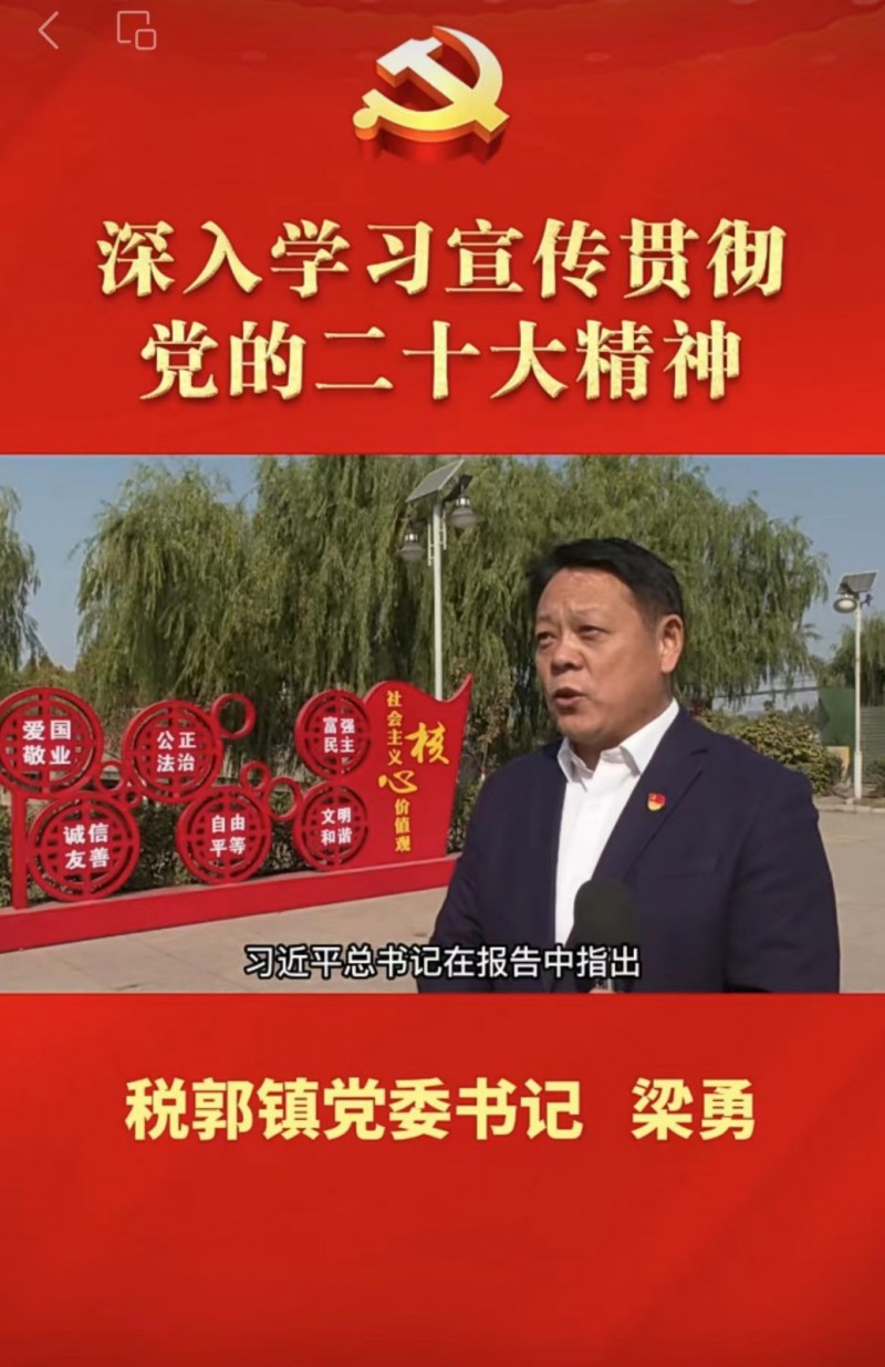 連日來,黨的二十大精神在稅郭鎮廣大黨員干部群眾中持續引發強烈反響。在新時代新征程上,稅郭鎮將認真學習貫徹黨的二十大精神,緊密圍繞黨的二十大確定的發展思路、目標任務,踔厲奮發、勇毅前行,擼起袖子加油干,在新的趕考之路上交出“稅郭答卷”。
