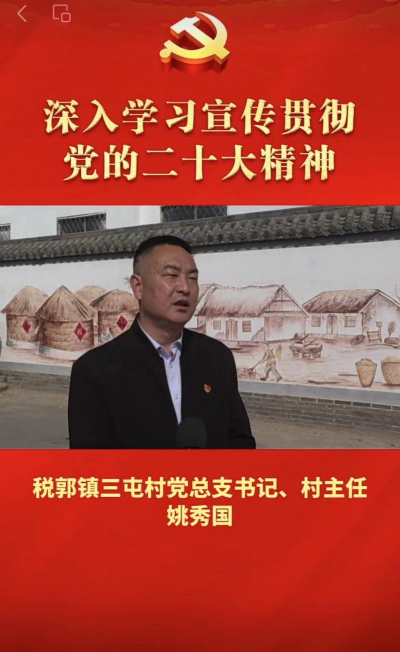 稅郭鎮三屯村黨總支書記、村主任姚秀國:關山初度塵未洗,策馬揚鞭再奮蹄。作為一名基層黨總支書記,我將始終堅持以人民為中心的發展思想,積極回應群眾“急難愁盼”,多做民生實事好事,用創新的實踐、務實的作風、暖心的舉措,守好一方人民的心,把美麗鄉村、幸福家園建設得更加美好。始終堅持黨建引領、全面振興的工作目標,進一步夯實基層組織基礎、進一步建強干部隊伍、進一步拓寬增收渠道,依托市、區“百企聯百村”行動,繼續探索“黨組織+企業+合作社”發展模式,持續打造我村櫻桃特色種植示范項目,激活村級發展新動能。