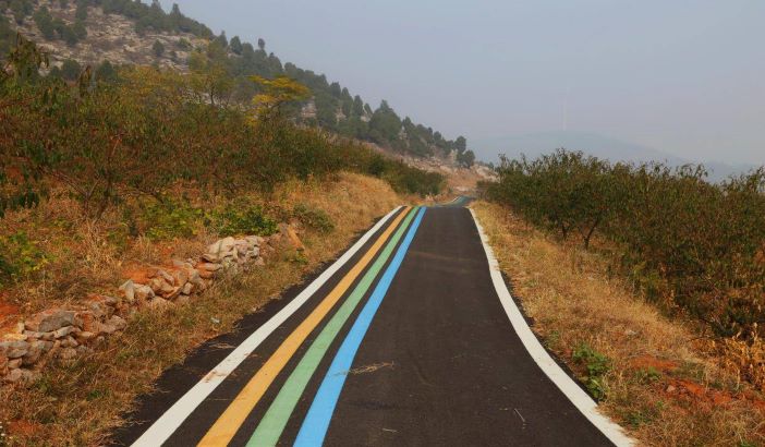 “在彩色的公路上行駛,讓人有一種在‘景中走、畫中游’的感覺。”近日,在棗莊市臺兒莊區張山子鎮黃丘山套,一道道紅、黃、藍三色“彩虹線”出現在鄉村道路上,引得不少群眾拍照曬朋友圈。張山子鎮黃邱山桃花源精品環線漫道通車,這是臺兒莊區打造的又一條“網紅公路”?!耙酝穆访婵油莶黄?、特別顛簸,彎道還很多,錯車很困難,現在干凈彩色的大道舒服又漂亮,路好了游客多了,現在周邊的農家樂生意開始好起來了?!迸_兒莊區張山子鎮黃丘山套村民吳磊說。