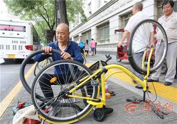 西安一家共享單車公司得知王建民在義務(wù)維修單車后,主動(dòng)和他聯(lián)系,給他提供更換的配件和一些專用維修工具。