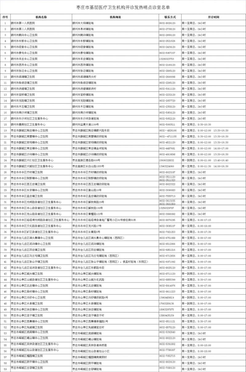 棗莊市二級以上醫療機構開設發熱門診情況公告