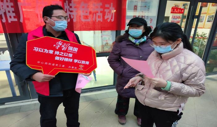 “您好,大姐,看您家孩子2歲了,您也下載個‘學習強國’APP吧?里面有專家對于如何教育孩子的課程指導,這些都是免費的。”“您好,阿姨。我們是中心街街道‘學習強國’學習平臺推廣志愿者,您了解‘學習強國’學習平臺嗎?我給您介紹下吧,下載‘學習強國’學習平臺可以實時看新聞,里面還有育兒知識、職業培訓知識等豐富學習資源呢。”