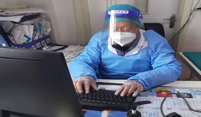 作為一名退休醫生的陳寶君,在村里他披上曾經的“戰衣”主動請戰來到防疫第一線,一只N95口罩,一身防護服,一個防護面罩,一個體溫槍,一本就診登記簿是他的“標配”,他堅守在衛生室,利用自己專業知識向居民介紹如何有效預防新冠肺炎,耐心細致地指導村民如何做好防護工作。