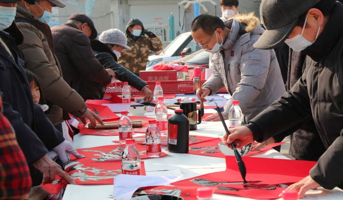 活動(dòng)現(xiàn)場,書法家們現(xiàn)場揮毫潑墨為村民們免費(fèi)寫春聯(lián)、送“福字”。一幅幅散發(fā)著墨香與年味的大紅對聯(lián)與“福”字展現(xiàn)在大家面前,村民們紛紛挑選春聯(lián),喜氣洋洋,為迎新春增添了濃濃的喜慶氛圍。