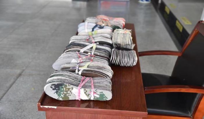 1月9日上午,棗莊市薛城公安分局交警大隊(duì)迎來了一位特別的客人——70多歲的老大媽,手里拎著兩個(gè)沉甸甸的布袋,為大隊(duì)一線執(zhí)勤交警送來了自己親手縫制的240雙鞋墊。