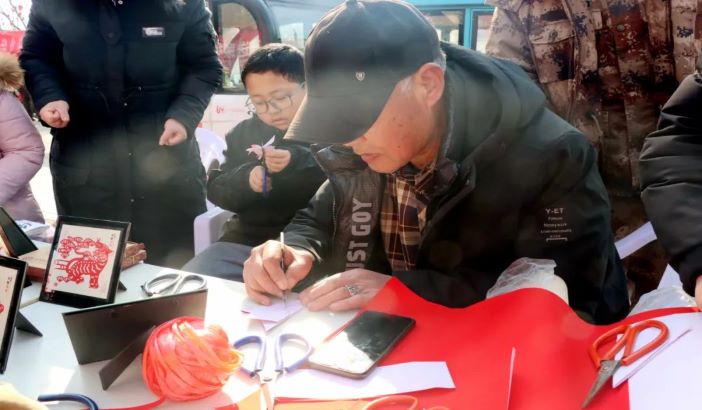 活動現場,來自區書法協會的名家們,揮毫潑墨,志愿者們將一個個火紅喜慶的福字和一副副寓意吉祥的春聯送到群眾手中,融融暖意也實實在在地傳遞到了群眾心坎兒上。