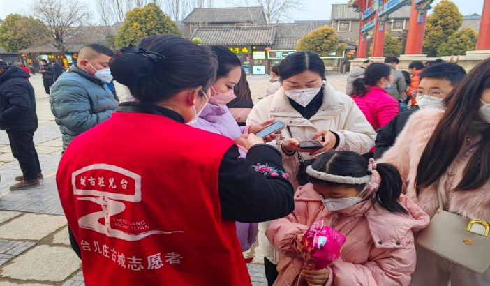 春節期間,盡管寒冬凜冽,為營造文明祥和的節日氛圍,進一步倡導文明旅行新風尚,確保道路交通暢通有序,臺兒莊區組織200余名志愿者,分別在古城入口、游客服務中心、交通路口等游客相對集中的地方,設立志愿服務點,為出行的市民、游客指引道路、解答咨詢,提供熱水、醫用防護口罩、消毒濕巾、導覽等服務。志愿者們熱情細心,耐心解答游客提問,認真記錄游客需求,并現場提示游客做好個人防疫防護、文明游覽。遇到游客丟失的物品,志愿者主動聯系失主,妥善處置丟失物品,確保失物歸還至游客手中,贏得了游客的一致好評。