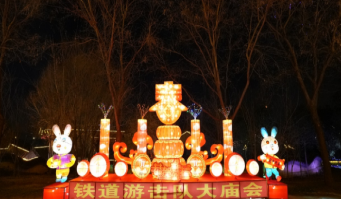 在鐵道游擊隊景區,游客不僅可以逛大廟會,還能觀賞各種魯南民俗表演,金龍、雄獅聞聲起舞,贏得現場觀眾陣陣掌聲。當夜幕降臨,“萌兔鬧新春”主題燈會開始迎客,千燈萬盞營造出美輪美奐的夜間景觀,為游客營造多元化、沉浸式的游園感受。