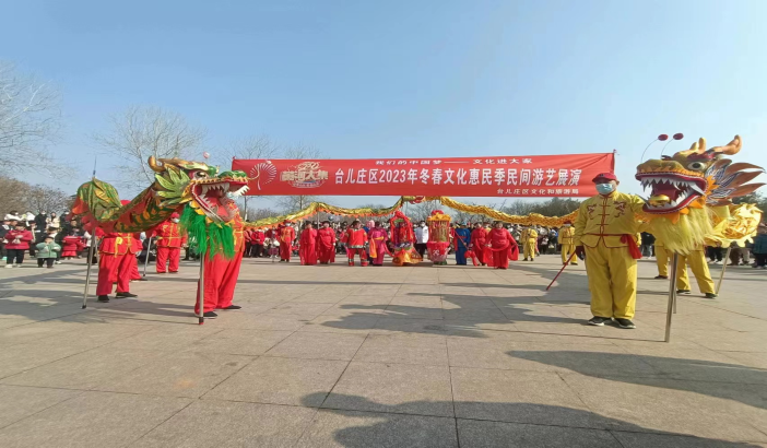 春節期間,棗莊市開展“我們的中國夢”——文化進萬家暨黃河大集冬春文化惠民季系列文化活動,以各地公共文化場館、百姓大舞臺、文體廣場、劇場劇院等陣地為依托,舉辦群眾喜愛的送戲、展覽、演出等文化藝術活動,組織開展群眾性小戲小劇展演、書畫作品展覽、“村晚”、民間游藝等新春期間重點品牌文化活動。滕州市舉辦“2023首屆棗莊(滕州)市非物質文化遺產購物節”,開展非遺傳承實踐活動。山亭區、薛城區推出“民間文化藝術之鄉線上線下專題風采展示推廣活動”;嶧城區舉辦文化館里過大年——嶧城歡樂匯?2023年“我們的中國夢”文化進萬家暨黃河大集系列活動;市中區舉辦 “我們的中國夢——文化進萬家”暨文化科技衛生“三下鄉”活動,2023年迎新春“黃河大集”民間游藝文化展演活動。精彩節目吸引廣大群眾積極參與觀看,讓人們盡情領略傳統文化的魅力。