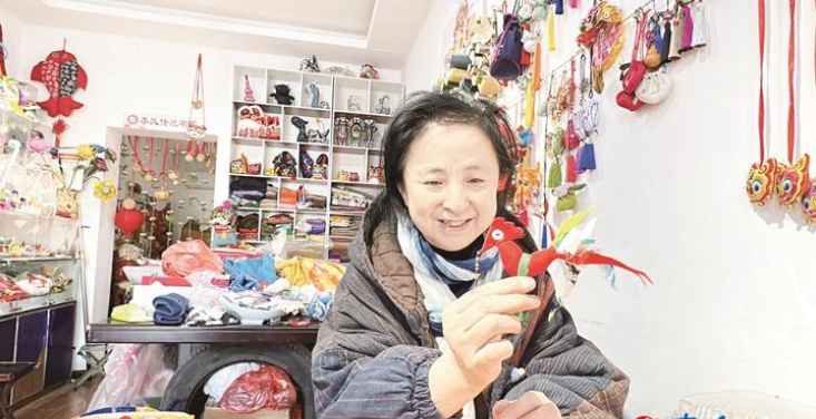 除了“打春雞”,工作室擺滿了五顏六色、姿態各異的布老虎、布兔子、布魚等布藝品。“在堅守傳統文化與技藝的同時,我也在不斷創新制作技藝,將傳統的文化元素與現代的表現手法相結合,讓傳統布藝融入尋常百姓的生活中。”李安玲指著一個黃色的小兔子說,“這一個小兔子接近30塊布堆起來的,從打版開始到剪裁全是純手工,做完后我還在它身上繡上了一排青草。這樣也寓意這小兔趴在青草地里,肆意的食青草。作為非遺傳承人,作為傳統技藝的傳承人,我不會讓它消失,我會盡最大的努力把這門手藝傳下去。” (記者 劉一單)