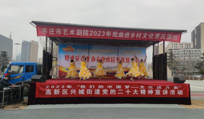 此次活動由棗莊市高新區興城街道主辦,邀請棗莊市藝術劇院文藝工作者傾情演出,將送戲下鄉與宣講黨的二十大精神相結合,通過舞蹈《繡出中國夢》,音樂快板《二十大精神放光芒》,歌曲《五星紅旗》《不忘初心》等經典節目,展現了黨和人民的光輝歲月與風雨歷程以及棗莊高新區人民“喜慶二十大、奮進新征程”的豪情壯志,讓觀眾對黨的二十大精神有了更深刻的理解,觀眾席上掌聲雷動,叫好聲不絕于耳。
