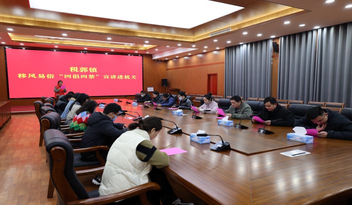 為大力弘揚(yáng)中華民族傳統(tǒng)美德,進(jìn)一步倡樹新時(shí)代美德健康生活方式,踐行移風(fēng)易俗新理念,弘揚(yáng)時(shí)代文明新風(fēng)尚,2月9日,棗莊市市中區(qū)稅郭鎮(zhèn)在鎮(zhèn)政府南二樓會(huì)議室開展移風(fēng)易俗“四倡四禁”宣講進(jìn)機(jī)關(guān)活動(dòng)。