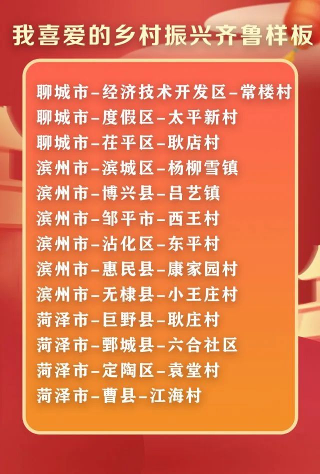 附:“我喜愛的鄉村振興齊魯樣板”名單