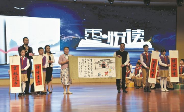 圖為市實(shí)驗(yàn)小學(xué)教師和同學(xué)們表演的《千家詩》節(jié)目。