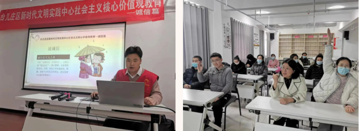 為認真學習宣傳貫徹黨的二十大精神,積極培育和踐行社會主義核心價值觀,增強廣大居民群眾誠實守信意識,近日,棗莊市臺兒莊區新時代文明實踐中心舉行“社會主義核心價值觀教育——誠信篇”宣講活動。