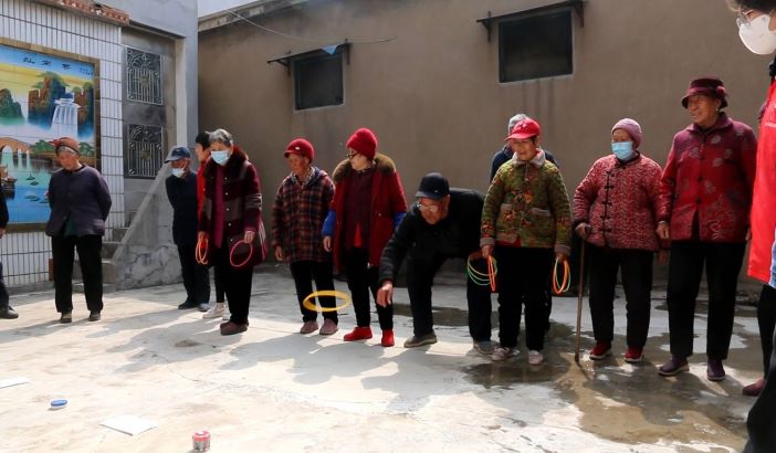 活動共設五個環節,分別是文藝匯演、套圈游戲、愛心午餐、電影放映、健康課堂。活動中志愿者們為參賽村民們講解了比賽規則和注意事項,參賽的爺爺奶奶們像孩子一樣有序地排好隊,等待著自己上場。活動“套圈游戲”深受大家喜愛,看著志愿者們依次擺好獎品,大家趣味大增,活動現場歡聲笑語,其樂融融,每個人臉上露出了幸福的笑容。