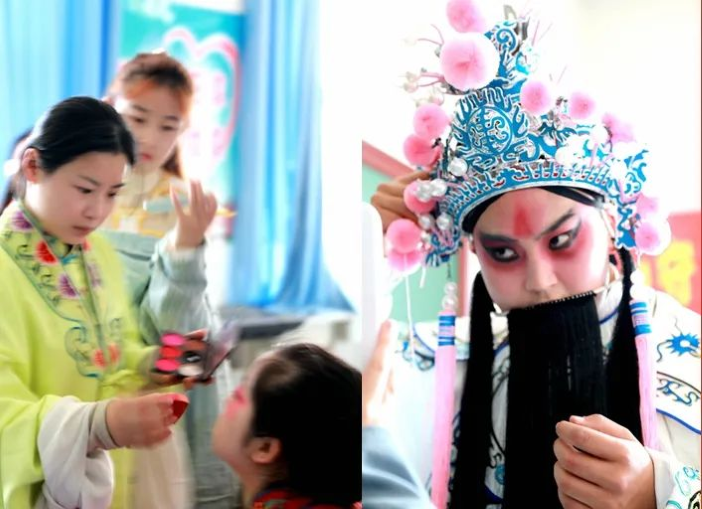 本次活動以柳琴戲劇目、戲曲、民族樂器、流行歌為主,精彩的演出,富有感染力的唱腔贏得了師生們的陣陣喝彩,為老師和孩子們帶來了一場精彩絕倫又內涵豐富的戲曲盛宴。為了讓孩子們更好地體驗戲曲藝術的魅力,戲曲老師還和同學們進行了互動,戲曲老師給孩子們畫上臉譜,現場教授戲曲唱腔、走步等基本表演。讓同學們通過近距離接觸戲曲文化,感受戲曲藝術的魅力。