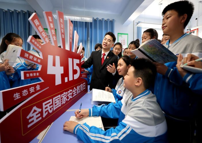 4月14日,棗莊市市中區人民法院組織法官走進棗莊41中課堂開展“全民國家安全教育”宣傳活動,法官通過多種方式向學生宣傳國家安全相關的法律法規知識,增強學生們的國家安全意識,迎接第八個“全民國家安全教育日”的到來。(大眾報業·大眾日報客戶端記者 張環澤 通訊員 吉喆 趙文勇 報道)