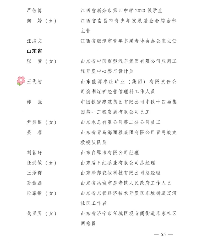 全國優(yōu)秀共青團干部名單